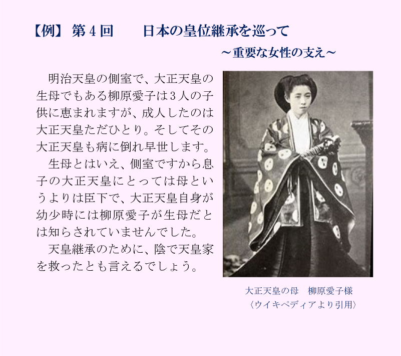 第4回 7月 日本の皇位継承を巡って ~重要な女性の支え~